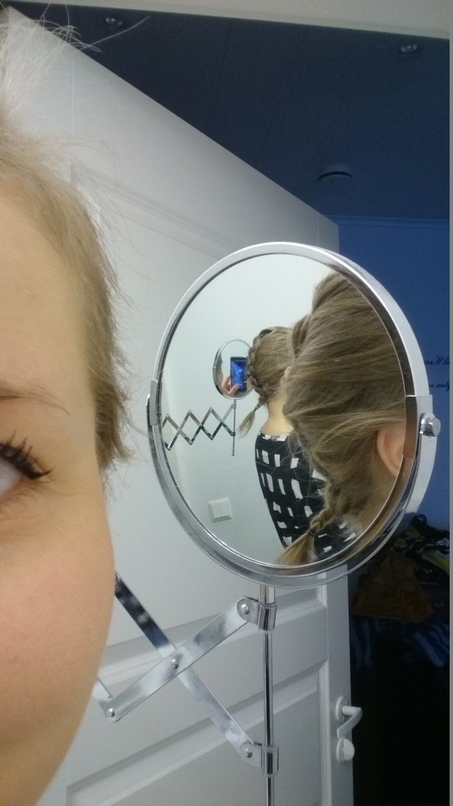 0830 Mies lähtee poikien kanssa avoimeen päiväkotiin. Minä puen vaatteet, sipaisen meikkiä ja kampaan hiukset jotenkin.