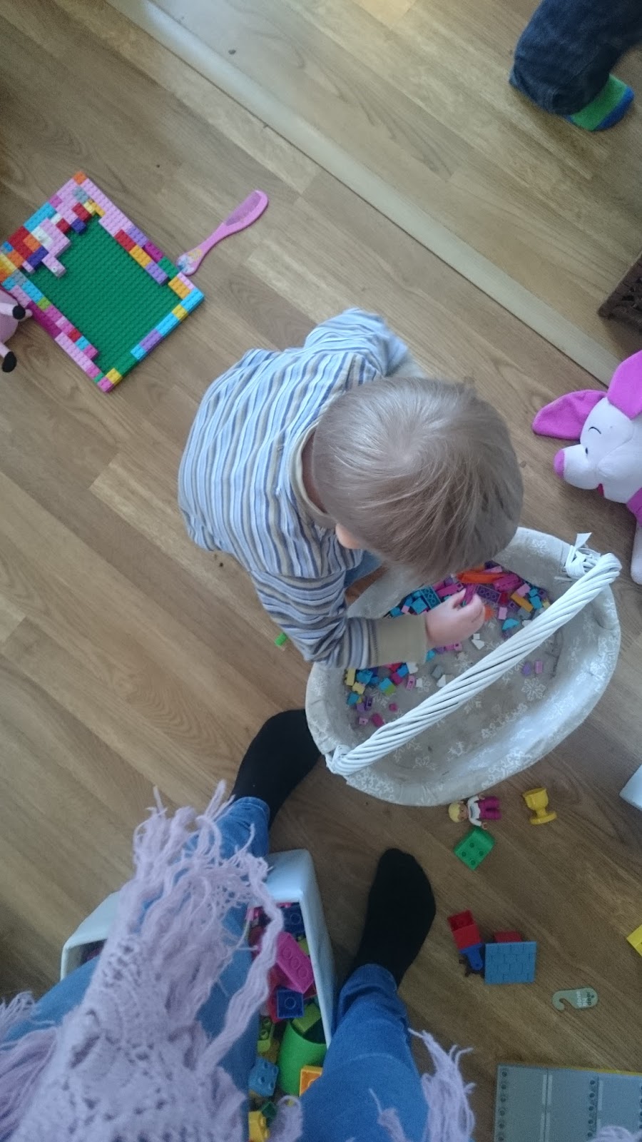 1630 Pojat leikkivät keskenään välillä hienosti, välillä ei niin hienosti… Katselemme, kun lapset temppuilevat kivoilla kattorenkailla, teemme palapelejä, tutustumme kauniiseen kissaan, koluamme kaikki lelulaatiot läpi…